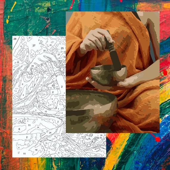 Singing Bowl Paint By Number Monk Signing Bowl Coloring By Etsy